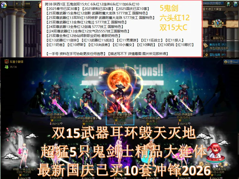 A找回包赔号-五鬼剑双15大C青旋 6头红12连体6头红11加6头红10【2025春节已买30套】【2025耕耘已买6套】【2025国庆已买10套】【25双尊武器15全身红12剑影 武器附魔大龙珠 5777技工 国服特色】【25双尊武器红13耳环红15阿修罗 武器附魔大龙珠 5777技工 国服特色】【25双尊武器红13全身红12鬼泣 5777技工 国服特色】【24双尊武器13全身红12剑魂 5777技工 国服特色】【[24双尊武器红13全身红12女气功5557技工国服特色】【25双尊全身红12协站师新职业奶枪 最新奶特色】【红13武器红11剑宗】【红13武器红11战法】【红11男漫游】【红11狂战士】【红11旅人】【红11奶爸】【红10缪斯】【红10决战者】【红10小魔女】【红10弹药】【红10奶妈【红10散打】【一手号 资料在手可协助更改信息】【描述写不下 详情看图 图片所见即所得】